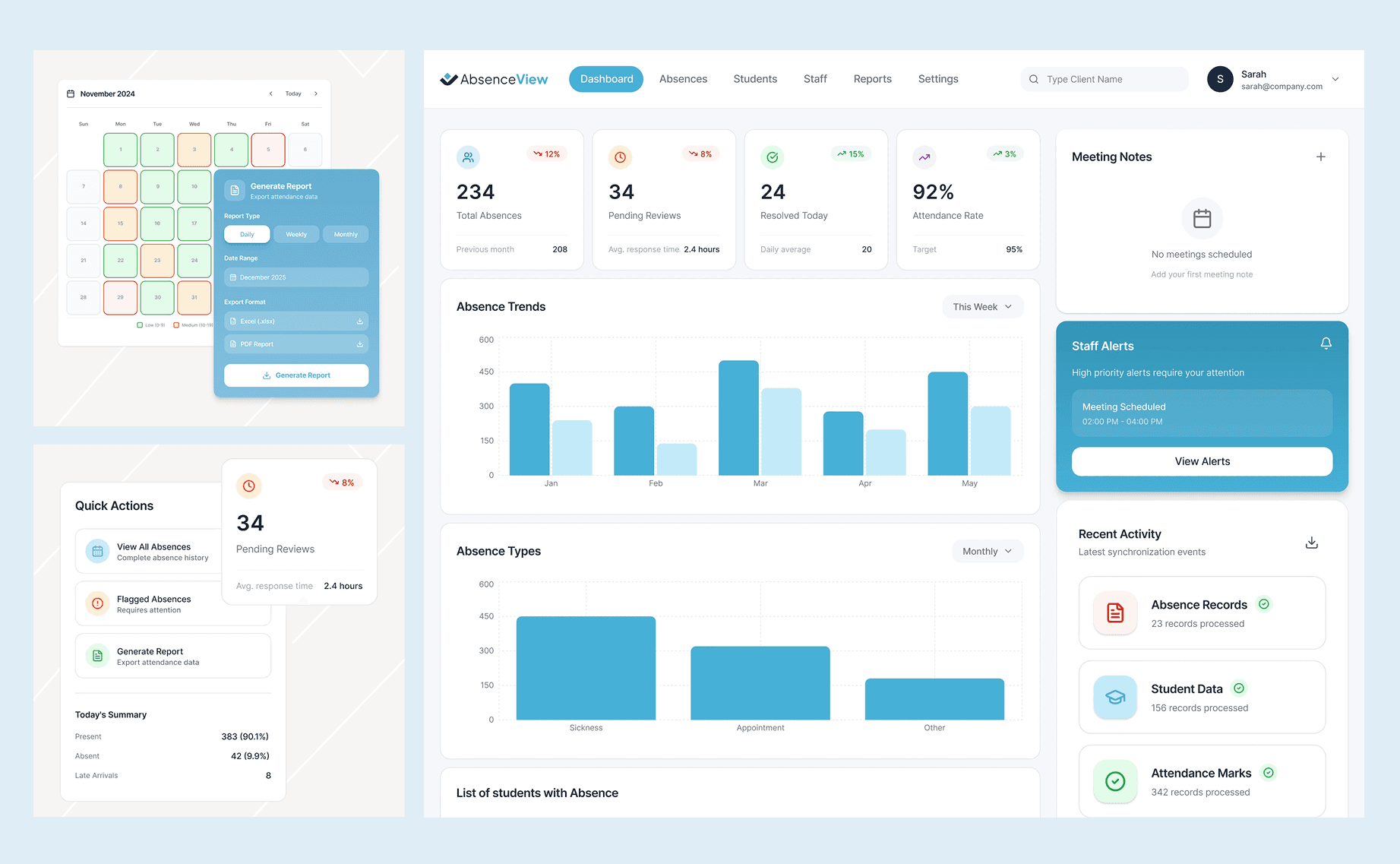 The existing product interface was functional but looked like an early MVP. We redesigned key screens to present AbsenceView as mature, reliable software that schools can trust. The improved UI builds confidence with decision-makers during demos and positions the platform as enterprise-ready from day one.